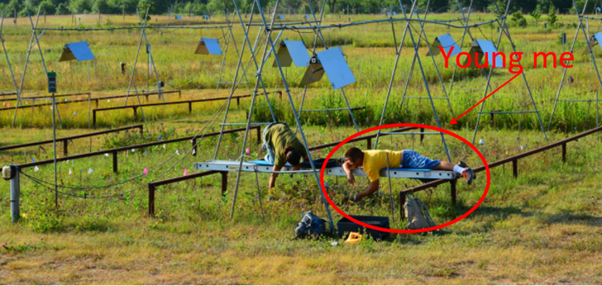 One of funniest mishaps Jacob had was during his time interning at Cedar Creek Ecosystem Science Reserves as an undergraduate student. He and his fellow interns were taking biomass clippings on scaffolding over plots during the mating season for bullsnakes. While he was hanging upside-down off the scaffolding collecting samples, a bullsnake about 4-5 feet long rushed towards him scaring him so badly that he fell off the scaffolding into the plot they weren’t supposed to disrupt.